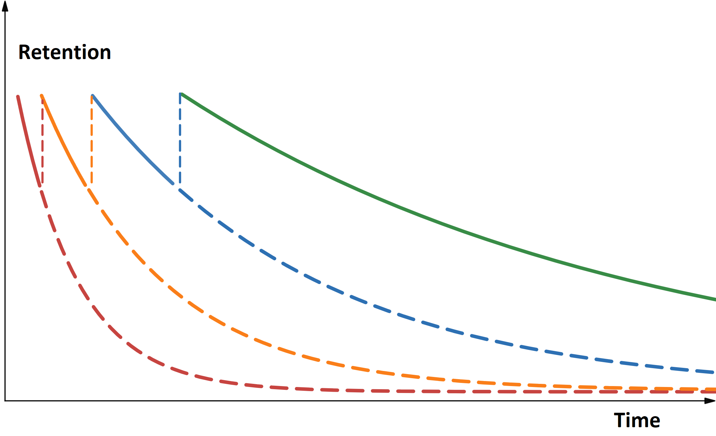 Eftersom vi glömmer bort det vi en gång lärt oss om vi inte fortsätter öva på det så påminner vi dig om när det är dags att öva på något så att du håller kunskaperna vid liv.