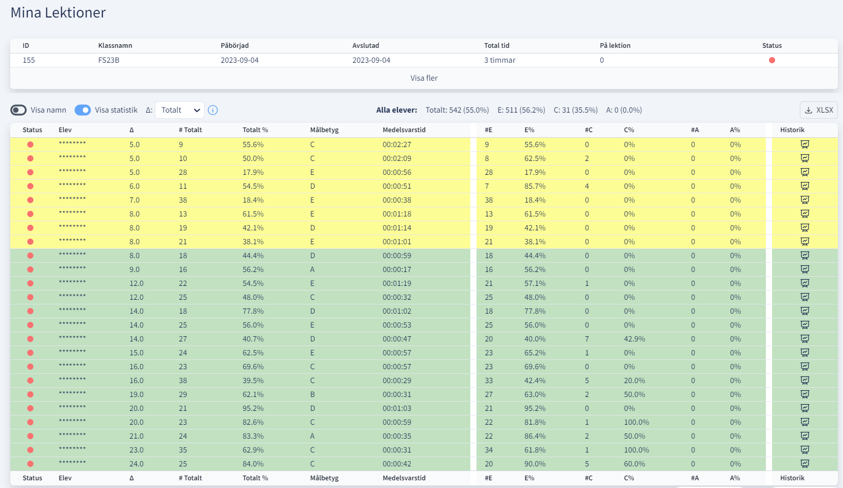 Få en överblick under lektionen hur det går för varje elev just för stunden och i kursen i övrigt så att du bättre kan rikta din uppmärksamhet där det gör som störst skillnad.